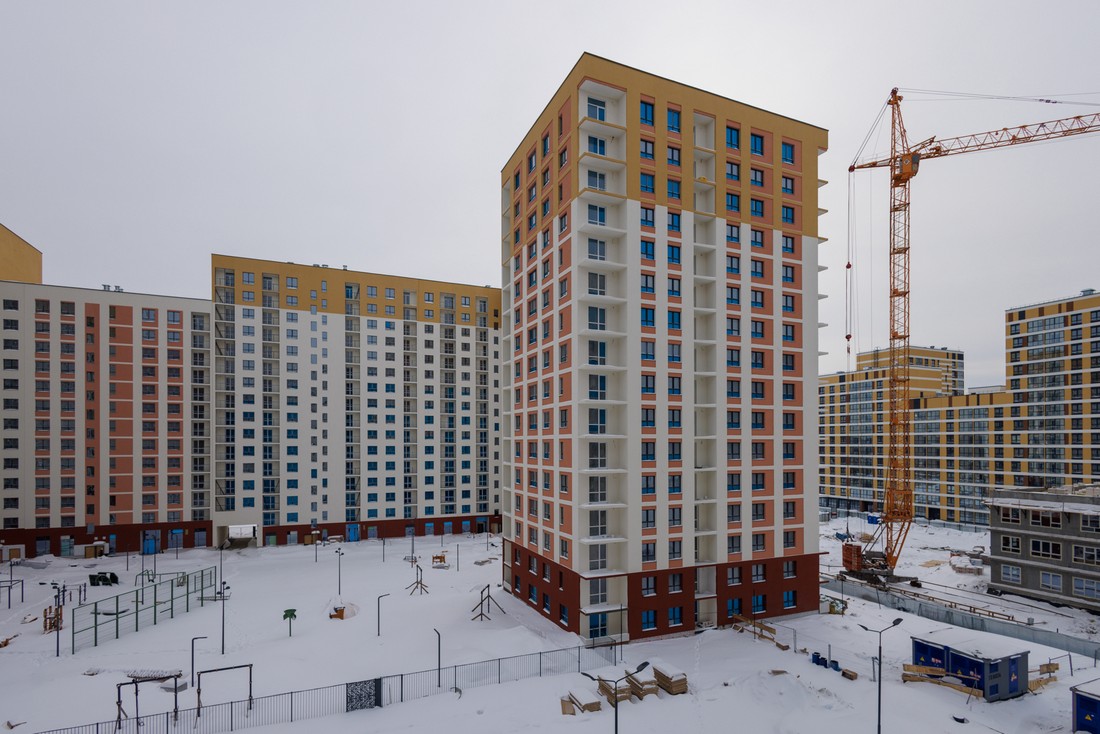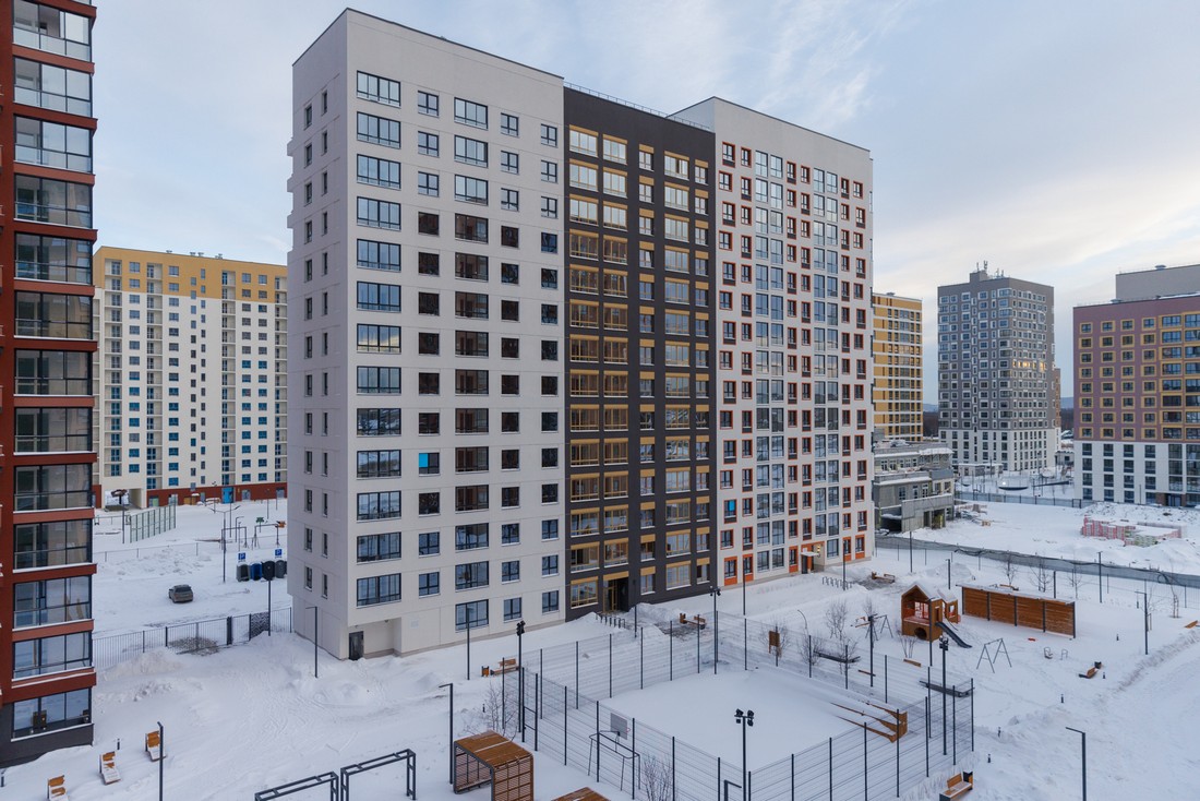 В основе проектирования жилого района лежит идея квартальной застройки. В настоящее время в районе дома №1, №2, №3 и №4 введены в эксплуатацию, ведется строительство еще трех домов, архитектура которых отличается разной цветовой палитрой фасадов и интерьеров. Благодаря разноэтажности секций (от 9 до 18 этажей) во дворе и в квартирах всегда будет много солнечного света.